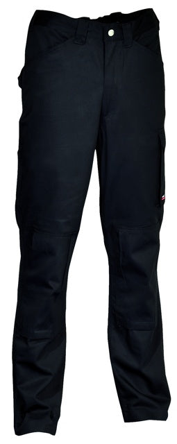 BESCHREIBUNG: 1 Gesäßtasche mit Klettverschluss, breite Vordertaschen, Hammerschlaufe, justierbarer Bund, Seitentasche, verstellbare Einfügung der Kniepolsterung, Zollstocktasche